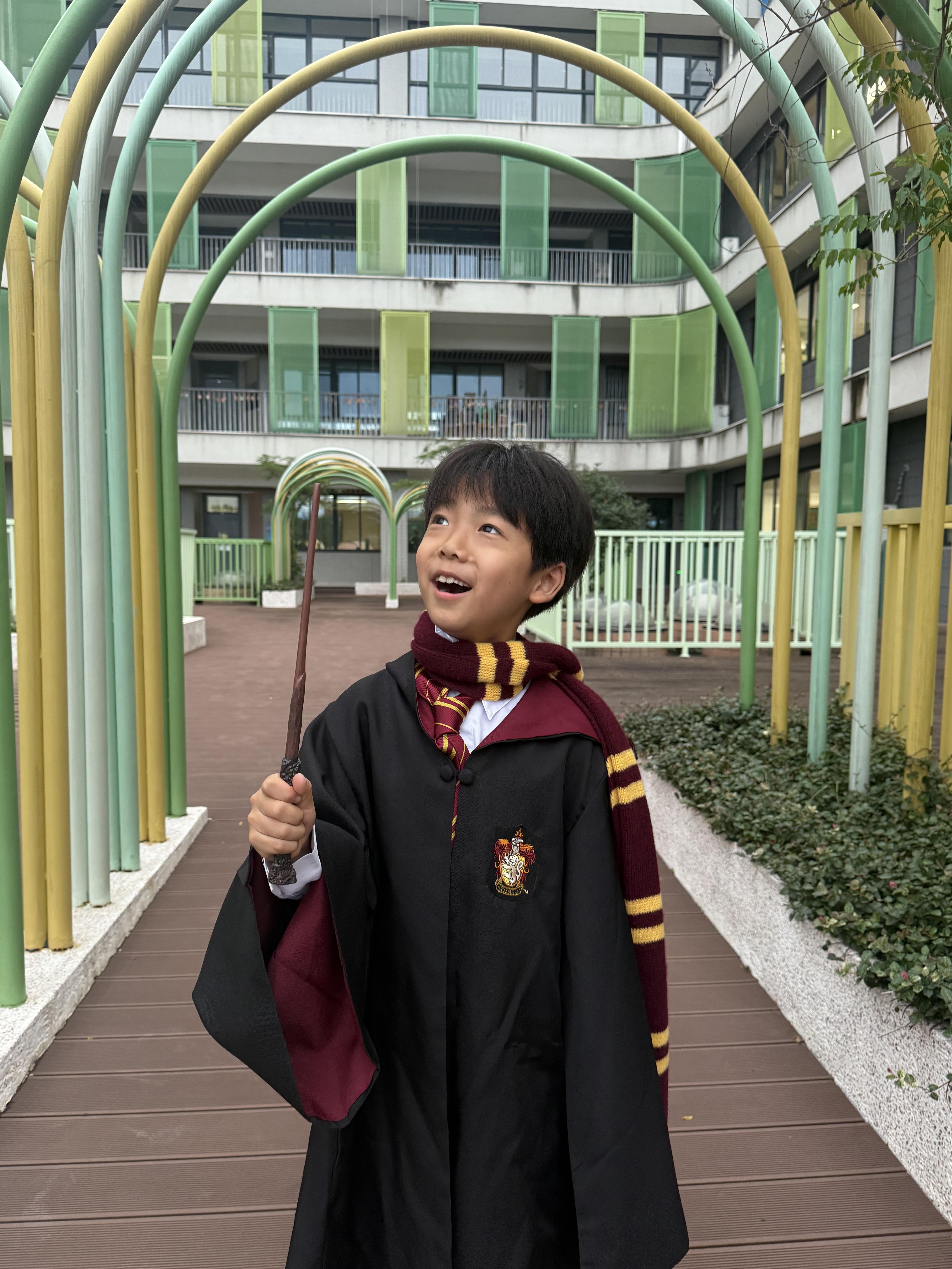 傍晚的校园,仿佛被施了一个奇妙的魔法。往常回荡着朗朗读书声的走廊和操场,今天变成了一个盛大而奇幻的剧场。看,那边走来一位小小的“艾莎”,蓝色的纱裙随着她的步伐轻轻摆动,她优雅地向遇到的每个人挥手,仿佛能挥手变出冰雪。她的身后,跟着一个胖乎乎的“熊猫阿宝”,圆滚滚的肚子让他走路一摇一摆,憨态可掬。不远处,几位身披自制铠甲的“美国队长”和“钢铁侠”正聚在一起,兴